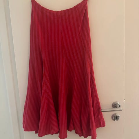 Vintage nederdel i klassiske striber fra Nørgaard Paa Strøget. Syet i baner. 100 % bomuld. Fås ikke længere i butik.