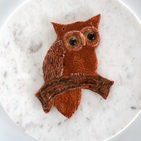 Fin keramik relief / vægplade / vægdekoration der forestiller en ugle. Glaseret. Signeret EL.