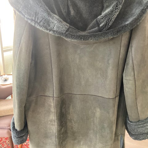 Rulamspels fra Giorgio, sort m grå pels, længde 136 cm fra skulder.