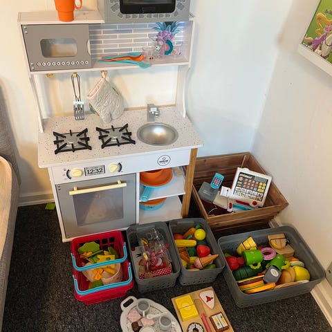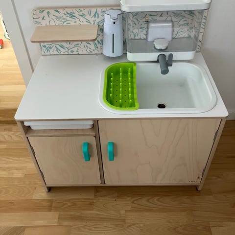 Sebra børnekøkken i træ med grå og naturlig finish