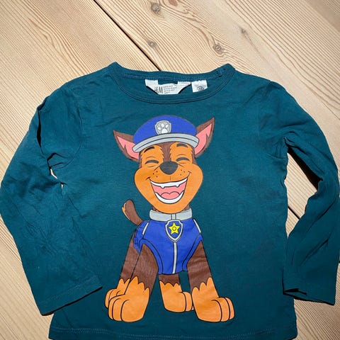 H&M langærmet T-shirt til dreng i størrelse 92. T-shirten er grå og lavet af bomuld. Den har et tryk med en figur fra Paw Patrol på fronten.