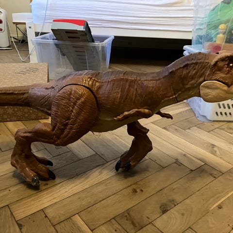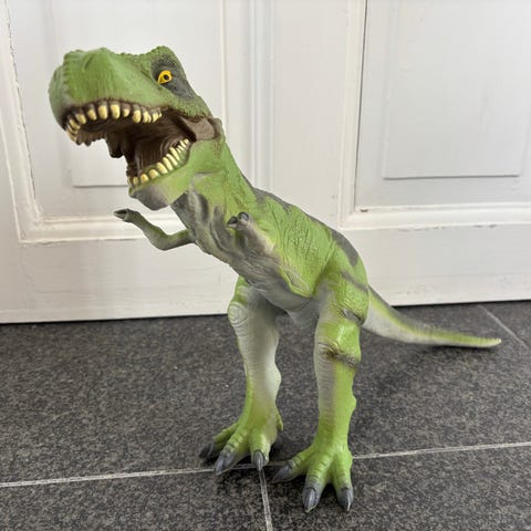 Stor dino legetøj måler ca 1 meter fra snude til halespids.