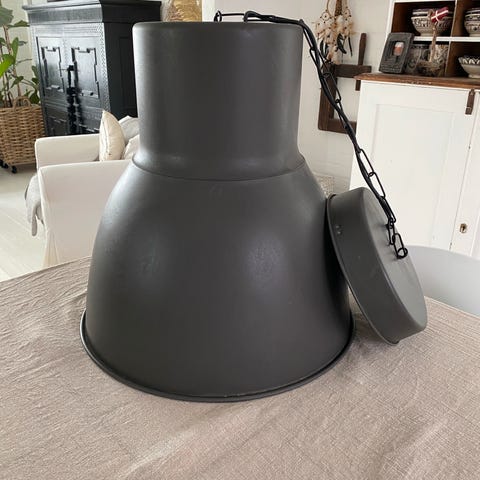 Sælger en flot IKEA HEKTAR loftlampe i mørkegrå – klassisk, nordisk og industrielt inspireret lampe, som passer perfekt over spisebordet, køkkenøen eller i stuen.