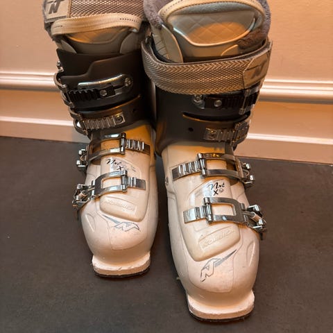 Nordica model Next 50 dame skistøvler str 250 eller EU 39. Skistøvlerne har flere spænder til justering inkl bagspænde til vristen.