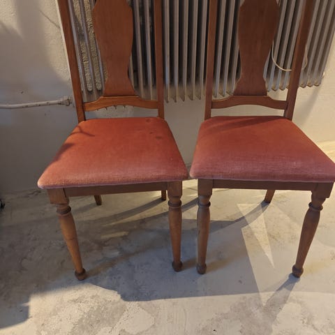 Vi har 14 i alt. 200,- for en, 6 styk for 1.000,- eller alle 14 stole for 2.000,-