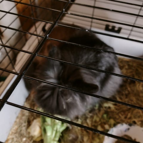 De søger et hjem, hvor de kan være frikaniner, de har aldrig været vandt til at bo i bur. De lever lige nu frit i min lejlighed.