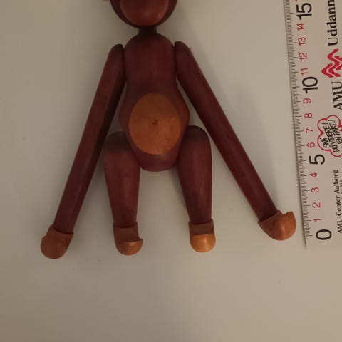 Kay Bojesen træfigur i form af en soldat. Figuren er malet i farverne rød, blå og hvid med slidt maling, hvilket indikerer brug og alder. Fremstillet af træ. Højde. 22 cm. Kan sendes.