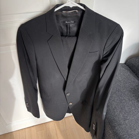 Figursyet jakkesæt i skøn grågrøn nuance. Fra midt 90’erne, og har hængt i en dragtpose. Uld med viskose som er helt let. Lækker vintage i bedste kvalitet. Ikke-ryger.