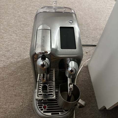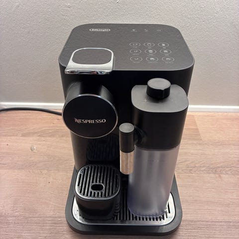 Nespresso Expert kaffemaskine i sort farve. Maskinen er designet til brug med Nespresso-kapsler og har en kompakt størrelse, der passer til de fleste køkkener. Den har en brugervenlig betjening med knapper til forskellige kaffestørrelser og en integreret kopbakke.