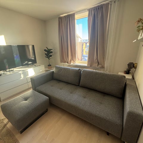 En af de sovesofaer jeg virkelig godt kan lide, fordi den faktisk både er pæn og god at bruge. Den fungerer som en ordentlig sofa til hverdag, men kan nemt laves om til en stor seng når der kommer gæster.