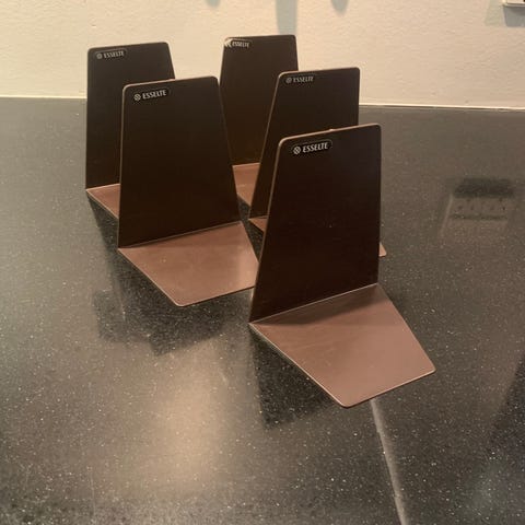 Den ene holder har et brud i det ene hjørne (se foto). Bruddet er ikke limet og overlades til køber.