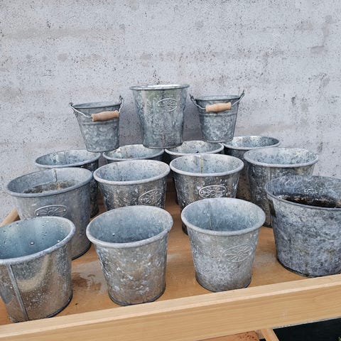 Diverse krukker/urtepotteskjulere, blanding af forskellige størrelser, perfekt til have eller altan. Har stået udendørs, så de bærer præg af dette. Sælges pga. flytning. Skal afhentes i Nivå (med/uden jord alt efter ønske). Helst samlet, men kan evt. opdeles hvis det ønskes.
