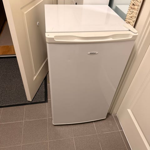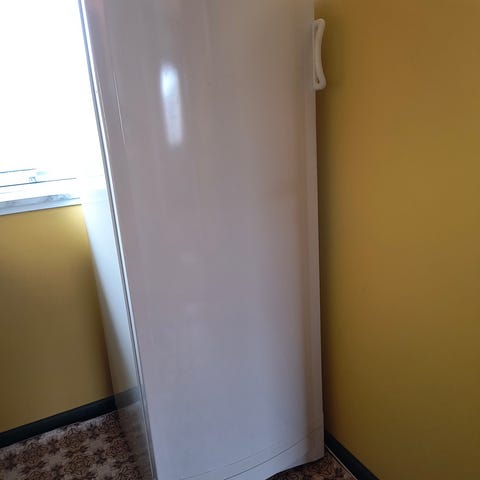 Fin lille fryser. Trænger til en klud. Har stået i en kælder som ekstra fryser.