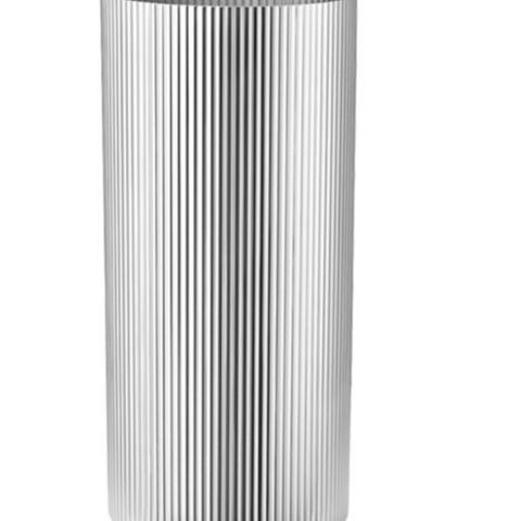 Georg Jensen vase i blankt metal. Vasen har en moderne og elegant form, egnet til dekoration med blomster.