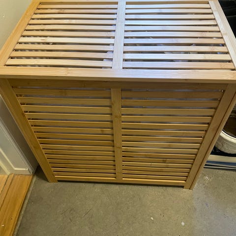 Smuk bambus vasketøjskurv i naturfarvet og orange, fejler intet, sælges da vi har fået en større