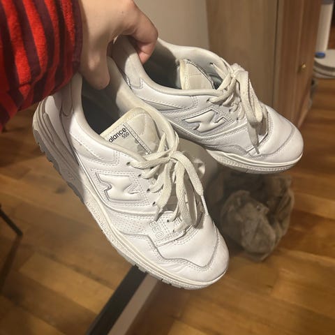 New Balance Sneakers i størrelse 40 med farverne hvid og lilla. Skoene har en kombination af mesh og syntetiske materialer, der giver ventilation og støtte. Designet til almindelig brug som sneakers.