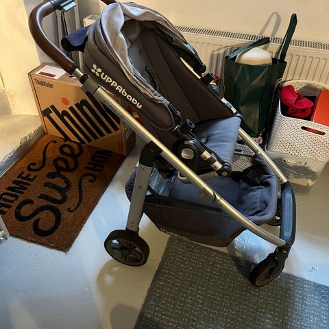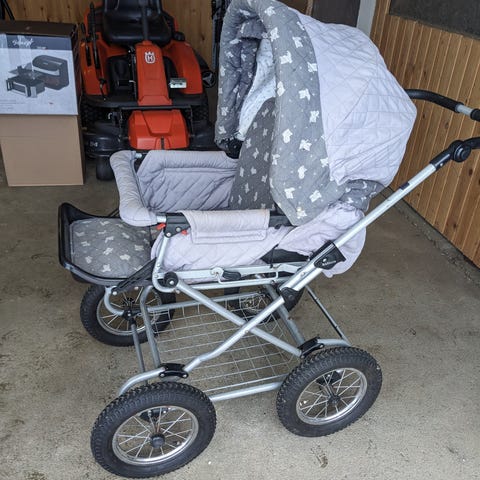 - Sæde og solskærm i hel stand uden huller eller trevler