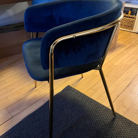 7 stk guldstole med rødt velourbetræk - stabelbare