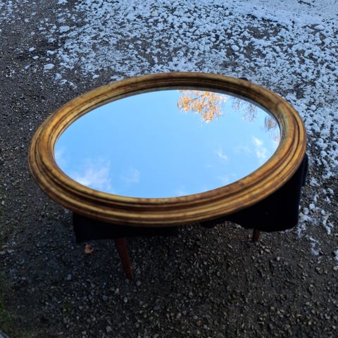 Ilva ovalt spejl med dekorativ ramme. Spejlet har en klassisk udformning og kan anvendes som vægspejl i forskellige rum. Liselund spejl