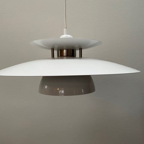 Pendel, Pendel / loftslampe / spisebordslampe i super fin stand. Diameter 30 cm. Har kun været i brug i ca 1/2 år. Matsort, E27 pære, inkl matchende roset, ledning ca 103.