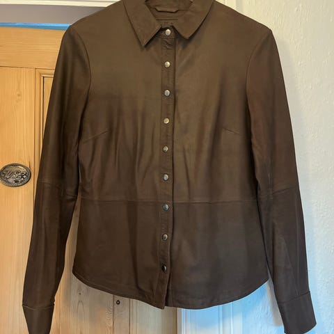 Lang læder skjorte i lækker og blød skindkvalitet. Skjorten er lavet i en let kvalitet hvilket giver et feminint look og et smukt fald. Skjorten kan styles op og ned efter humør og kan eventuelt også styles med et taljebælte for at fremhæve figuren.