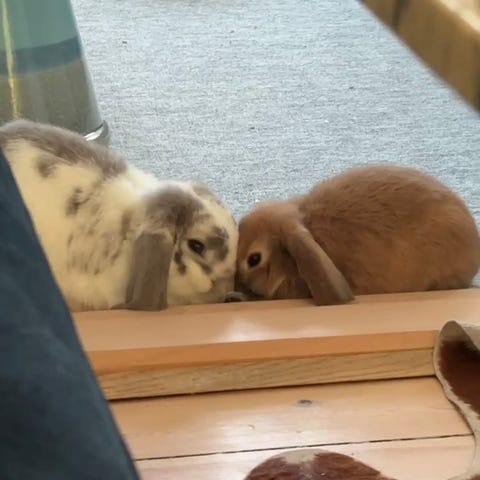 Winti og Angel søger nyt hjem. De er fra i sommers og er søskende. En dreng og en pige. Løvehoved/minilop. De er ikke neutraliseret, men de går op ad hinanden og elsker hinanden højt.