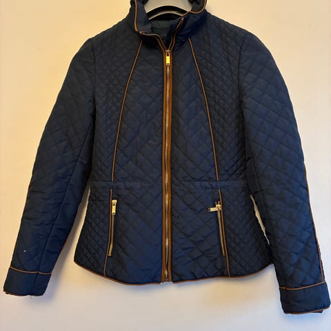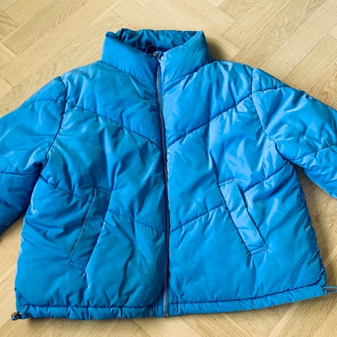 H&M dun jakke i størrelse M. Jakken er sort og lavet af polyester med dun, hvilket giver isolering og varme.