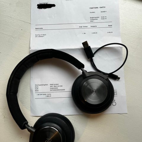 Bang & Olufsen Beoplay H7 trådløse hovedtelefoner i sort farve. Hovedtelefonerne har over-ear design med polstrede ørepuder og justerbar hovedbøjle. De anvender Qualcomm aptX teknologi for lydkvalitet og har indbygget genopladeligt batteri til trådløs brug.