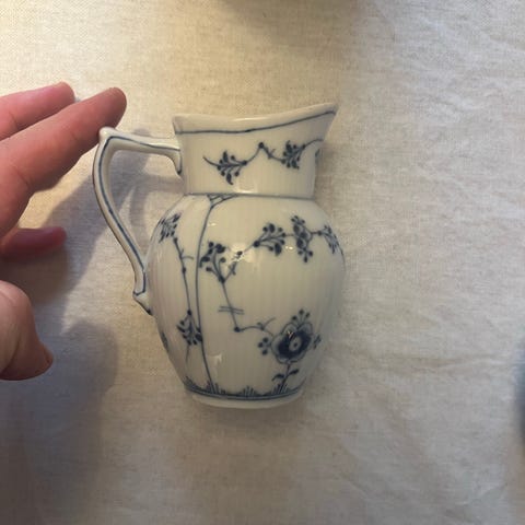 Royal Copenhagen Musselmalet Riflet flødekande porcelæn