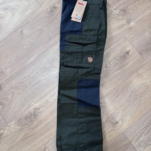Fjällräven G-1000 børnebukser i størrelse 152, farve grøn. Bukserne er lavet af slidstærkt G-1000 materiale og har flere lommer. De er velegnede til udendørs aktiviteter og kan imprægneres med Greenland Wax, som medfølger.