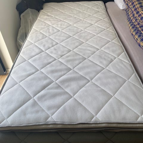Ældre model, virker fint. Med fjernbetjening og ben (meder). Helt ny lækker memoryfoam topmadras. Skjolder på bund af selve madras ( ikke topmadras, den er ny). Se foto.