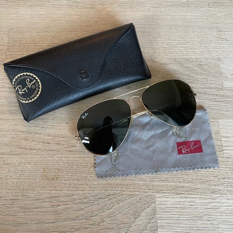 Ray-Ban originale solbriller til mænd i sort farve. Solbrillerne har klassisk design og leveres med etetui og pudseklud - etui (obs knap gået lidt op) med pudseklud - etui måler 16x8 cm - solbriller måler 14 cm bred og 4,5 cm høj - brillestang 14 cm lange. Fin stand og stadig meget brugbar.