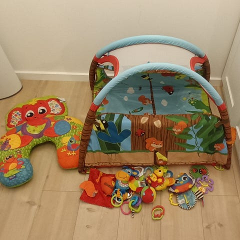 Aktivitetstæppe med buer og ophængt legetøj