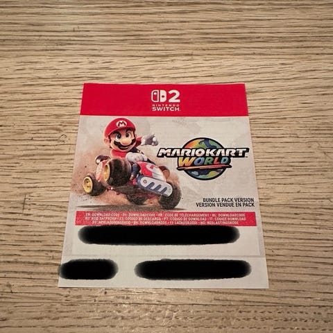 Hejsa, jeg sælger Mario Kart World Spillet som er en kode du skriver ind på din nintendo profil og så får spillet direkte for at downloade på din Nintendo Switch konsol.