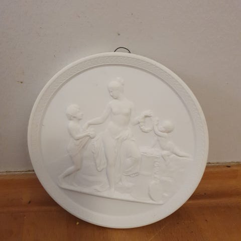 Gipsrelief fra Royal Copenhagen, Thorvaldsen.Dia 15 cm.Flot og velholdt, gå til varen, for flere billeder.(Reol 15).