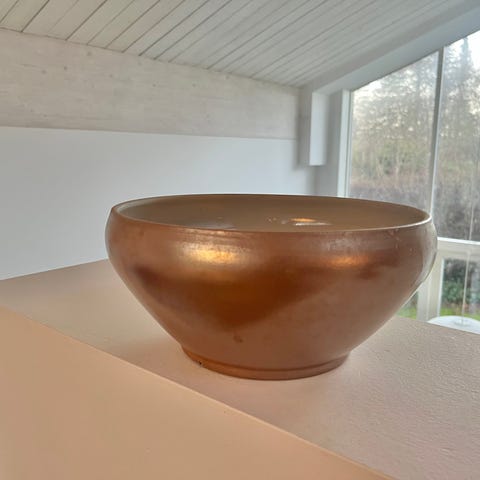 Stentøj, Skål med låg, Villeroy & Roch, Luxembourg, Retro skål i brun glaseret stentøj, glat låg og riflet på siden. Dia 19cm, højde 7cm. Har et meget lille hak på indersiden af låget (se sidste foto) og er ellers i fin stand. Kan sendes