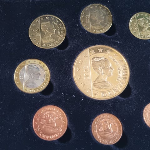 Mønterne er prøvemønter, aldrig i cirkulation, og Danmark indførte som bekendt aldrig euro – hvilket gør sættet historisk og meget samlerværdigt.