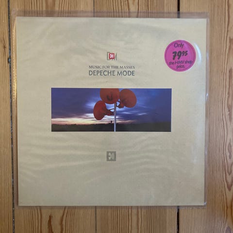 Depeche Mode Black Celebration LP vinyl med sort cover. Indeholder albummet Black Celebration med numre som "Black Celebration", "Fly on the Windscreen", og "A Question of Time".