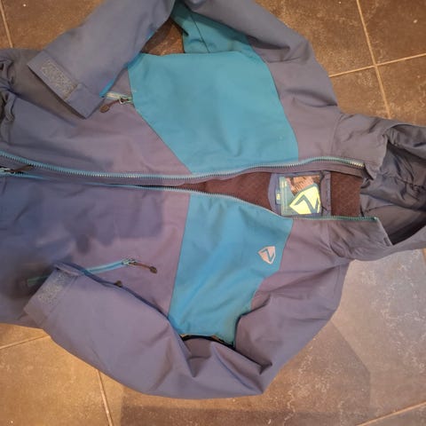 Todelt skisæt fra Katvig, str. 122 i mørke og lyseblå farver.