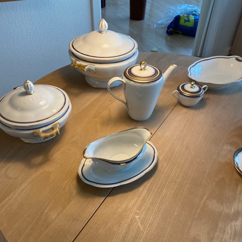 Smukt og klassisk Royal Copenhagen stel Hav, designet af Niels Thorsson. Det ikoniske blå stel.