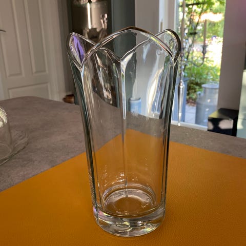 Vase, Nature / tulipanvase, EB Erik Bagger, Klar glas vase med flot facon i toppen.