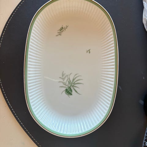 Originalt Royal Copenhagen serveringsfad i det udgåede stel Grøn Melodi.