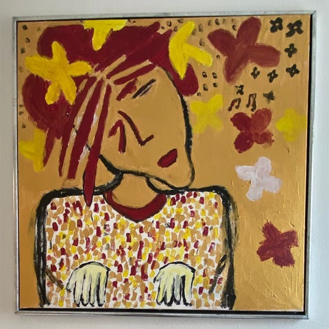 Rundt abstrakt maleri – Ø ca. 80 cm
