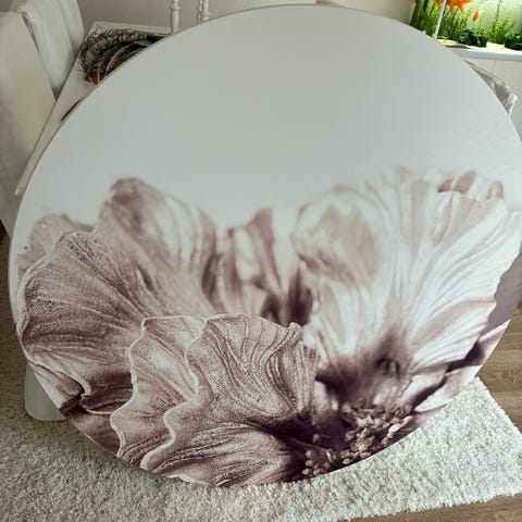 Maleriet måler ca. 80 cm i diameter og egner sig godt som et roligt, men markant element i indretningen – fx i stue, gang eller kontor.