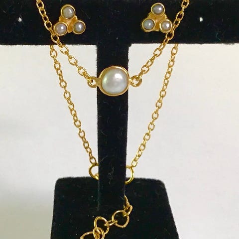 Smykkesæt. Nyt og ubrugt. Forgyldt sterling sølv. Ferskvands kulturperler. Armbånd og ørestikker.