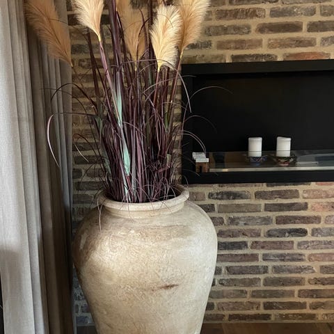 Meget dekorativ såvel alene som med høje tørrede græsser/blomster - eller som paraplyholder i entré/forgang 😉