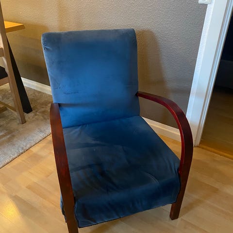 Gammel lænestol i velour
