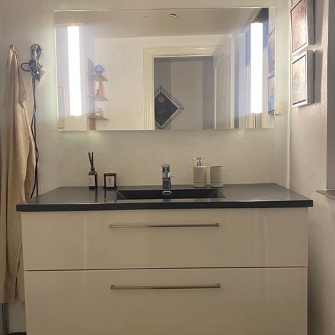 Stået fremme i 3 måneder. Fejler ingenting. Sælges kun fordi jeg flytter et sted hen, hvor der allerede er badeværelsesmøbel
