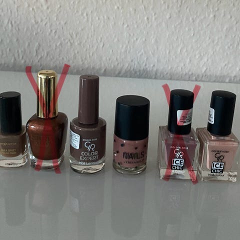 3 stk orange/brun neglelak i forskellige nuancer. Alle er fyldte/nye. Pris pr. stk.: 10 kr