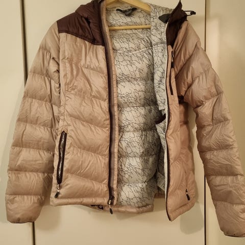 Der anvendes både illustrative produktbilleder og mine egne fotos af den konkrete jakke, så stand og detaljer fremgår tydeligt.